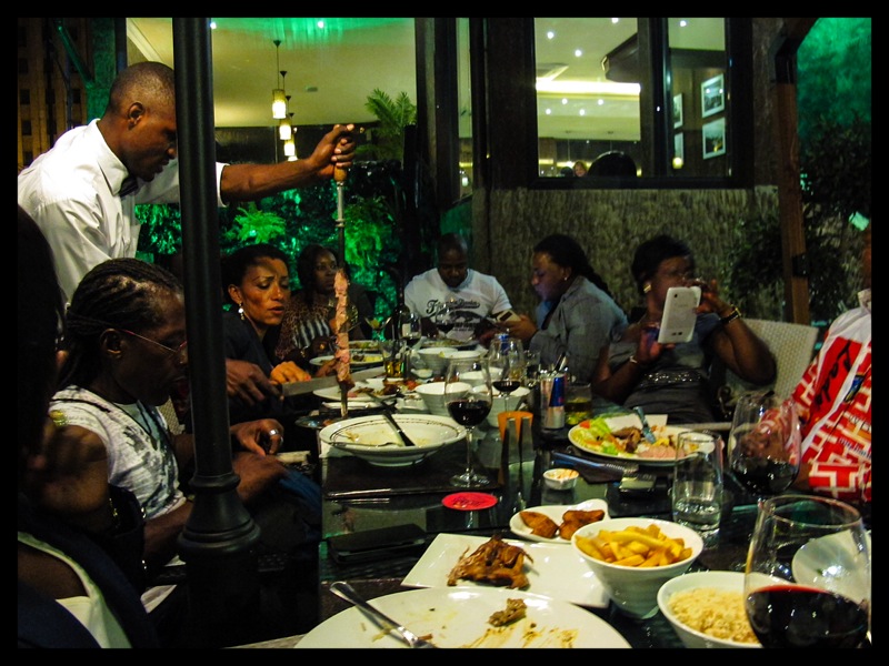 And the food is fabulous. I had some delicious grilled capitaine at the Corleone restaurant at the hotel Fleuve Congo, traditional pondu for lunch at the Panoramique close to the market area, a perfect beef brochette with chips at a sports bar, and an interesting Brazilian buffet of grilled meat, ranging from antelope to quail, at the hip Tucanos.